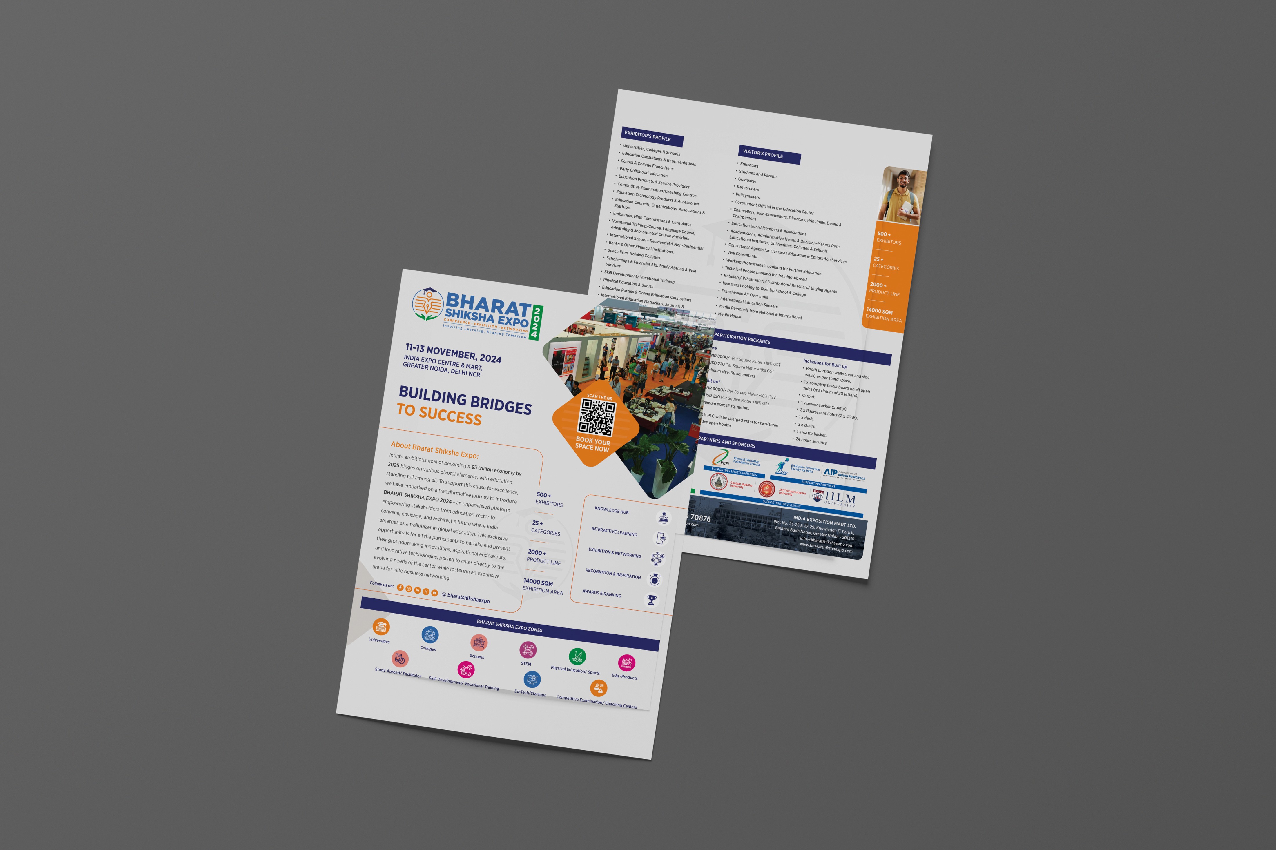 Repositioned the event narrative around India’s historic identity as Vishwa Guru, blending tradition with innovation. A unified brand language was developed across touch points—brochures, social media, press, venue branding, and outdoor media—rooted in heritage-inspired design with a progressive tone. Every element, from typography to messaging, reflected educational excellence, inclusivity, and a visionary spirit.